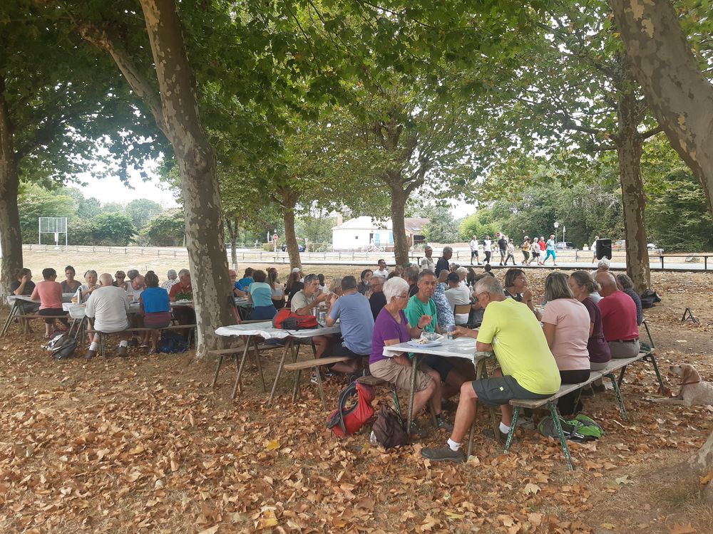 La suite du repas, avait lieu comme l’année dernière sous l’ombre des grands arbres du site de La Nanté. La vingtaine de membres de l’association et quelques sympathisants proposaient des plats exclusivement locaux et de qualité. Les participants ont savouré ce moment animé, propice à la convivialité.